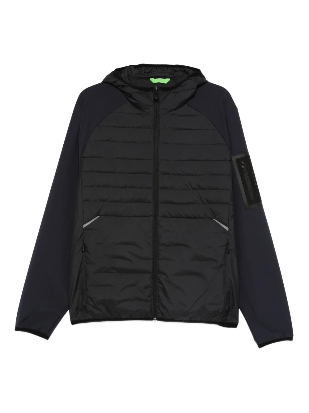 quilted padded jacket Highlights - Navy blue - Front zip fastening - Front zip pockets - Hooded - Quilted design Imported Composition Outer: Polyester 100%, Recycled Polyester 95%, Spandex/Elastane 5% Lining: Recycled Polyester 100%, Polyester 100% SIZE & FIT Model measurements Height 6 ft 1 in(1.85 m) Bust/Chest 35.82 in(91 cm) Hips 37.79 in(96 cm) Waist 29.13 in(74 cm) Washing instructions Dry Clean Only