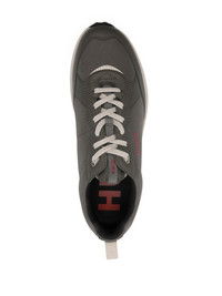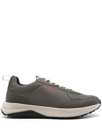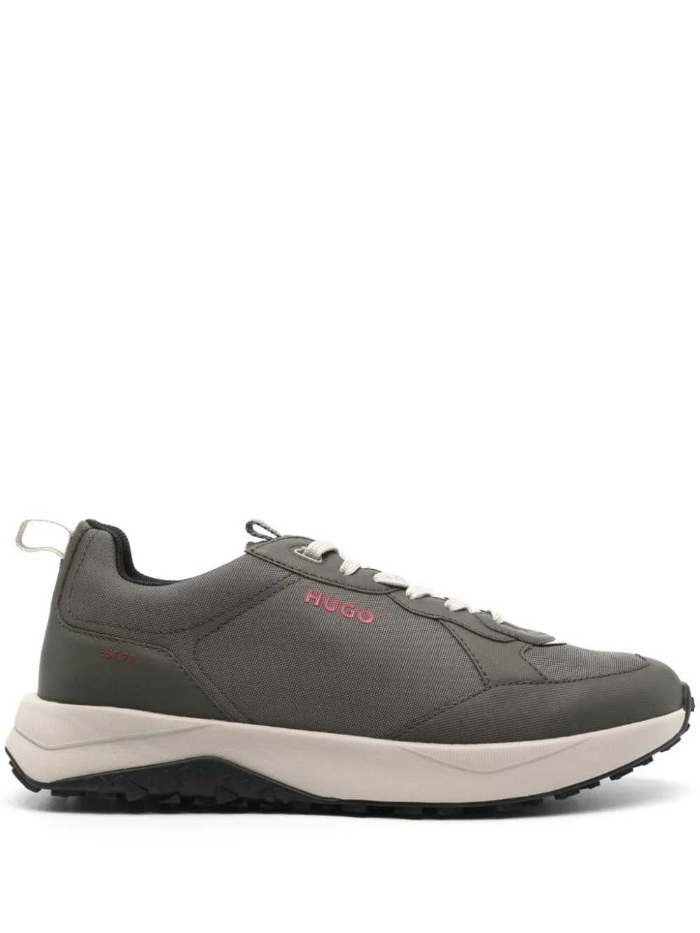 raised-logo panelled sneakers Highlights - Olive green - Panelled design - Raised logo detail - Logo patch at the tongue - Logo pull-tab at the heel - Almond toe - Front lace-up fastening - Padded ankle - Branded footbed - Contrasting rubber sole Imported Composition Sole: Recycled Rubber 100% Outer: Polyester 100%, Fabric 100% Lining: Fabric 100% SIZE & FIT Measurement HEEL 1.57 in(4 cm) Sole height 0.78 in(2 cm)