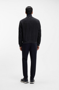 SIZE AND FIT The model wears a size 40R and is 6'1" tall with a, 37" chest, 29" waist and 35" hips. DETAILS Freshen your everyday collection with the rich suede and ribbed trims of this BOSS Menswear jacket. Zipper closure Easy regular fit. Regular fit Stand collar Fastening top: Zip closure Pockets top: Welt pockets Inside zip pockets Elasticized cuffs Fully lined Standard length Fit back length: 64 cm (25 inches) H-Muller - 50543213 QUALITY & CARE INSTRUCTIONS Reduced Dry Clean Do Not Wash Do Not Tumble Dry Material: 100% Goat leather, Lining: 100% Polyester Do Not Iron Do Not Bleach