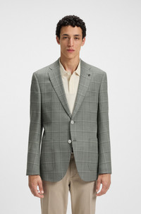 SIZE AND FIT The model wears a size 38R and is 6'1" tall with a, 32" chest, 28" waist and 34" hips. DETAILS H-Janson-FL-253 - 50545870 Tailored to a straight fit in stretch cloth, this BOSS Menswear blazer is rich in breathable wool. Patterned with a contemporary check. Regular fit Fully lined QUALITY & CARE INSTRUCTIONS Do Not Tumble Dry Quality: 80% Virgin wool, 18% Viscose, 2% Elastane, Lining: 100% Viscose, Sleeve lining: 100% Viscose Reduced Dry Clean Iron Medium Heat Do Not Wash Do Not Bleach