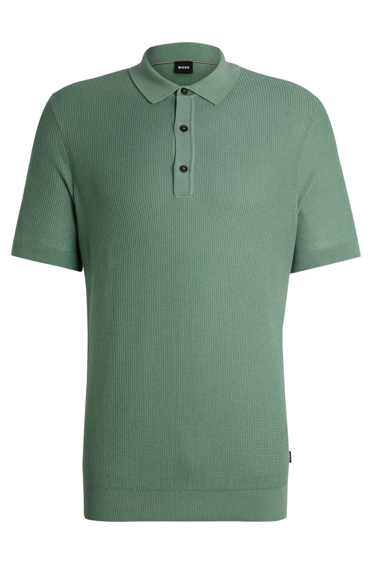 REGULAR-FIT KNIT POLO WITH MIXED STRUCTURES