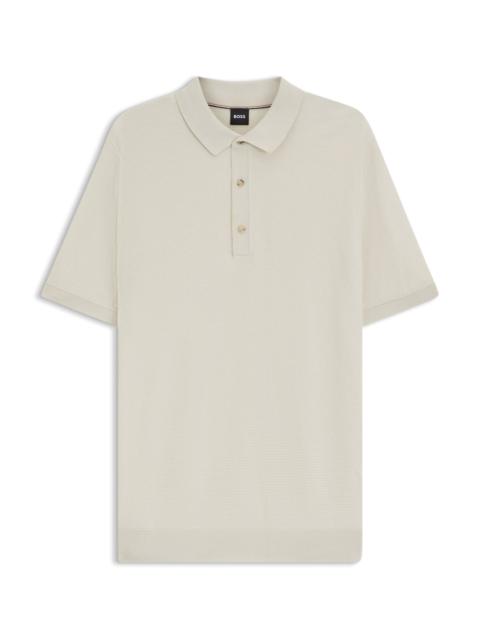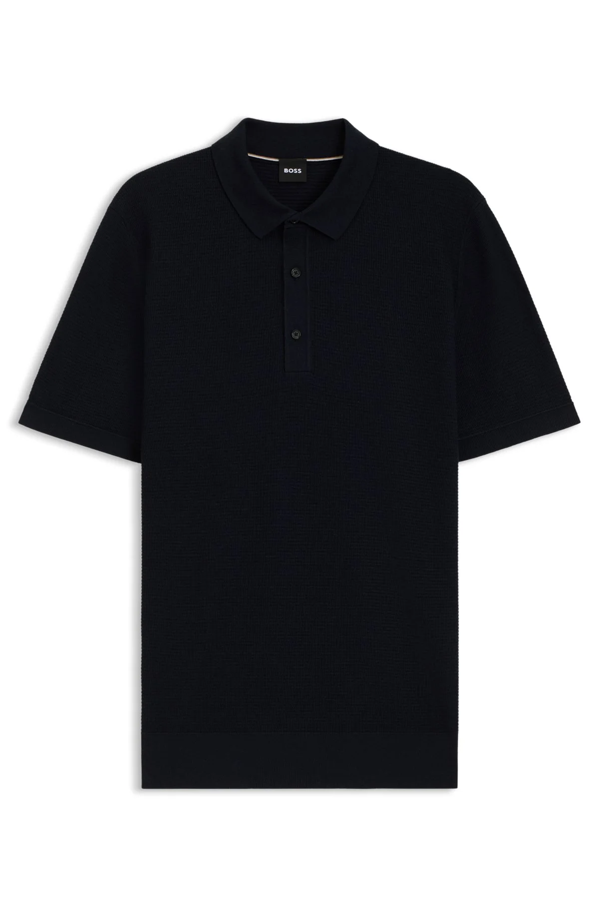 SIZE AND FIT The model wears a size M and is 6'1" tall with a, 36" chest, 29" waist and 37" hips. DETAILS H-Iannotti - 50543148 With its rich structure framed by ribbed trims, this BOSS Menswear knit polo will become a refined favorite. Blended with soft cotton. Classic regular fit. Regular fit Neckline: Polo collar Short sleeves Standard length QUALITY & CARE INSTRUCTIONS Cold, gentle machine wash; reduced spin speed. Dry Clean Only Do Not Tumble Dry Iron Medium Heat Do Not Bleach Quality: 50% Cotton, 50% Lyocell