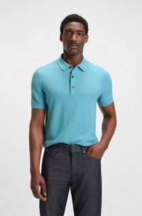 SIZE AND FIT The model wears a size M and is 6'1" tall with a, 36" chest, 29" waist and 37" hips. DETAILS H-Iannotti - 50543148 With its rich structure framed by ribbed trims, this BOSS Menswear knit polo will become a refined favorite. Blended with soft cotton. Classic regular fit. Regular fit Neckline: Polo collar Short sleeves Standard length QUALITY & CARE INSTRUCTIONS Do Not Bleach Dry Clean Only Do Not Tumble Dry Cold, gentle machine wash; reduced spin speed. Quality: 50% Cotton, 50% Lyocell Iron Medium Heat