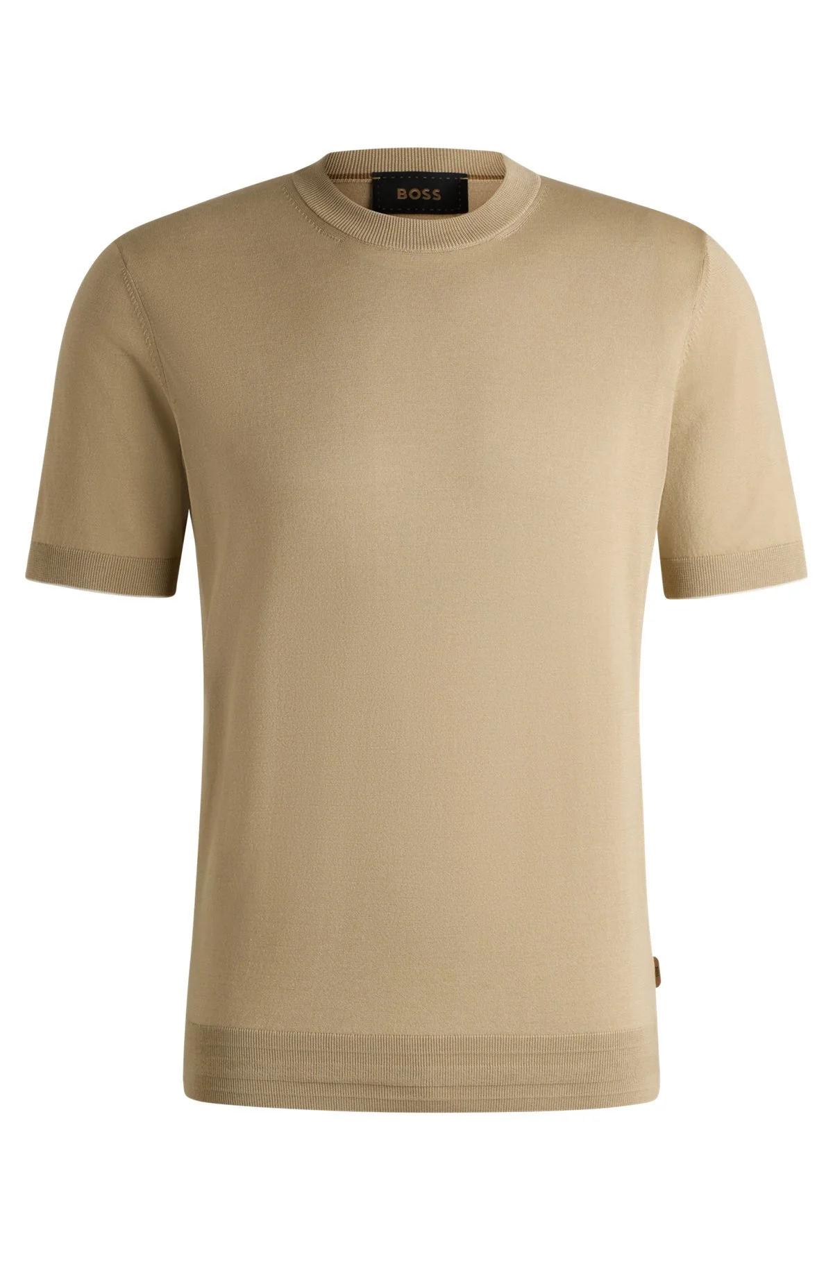 SIZE AND FIT The model wears a size M and is 6'1" tall with a, 33" chest, 24" waist and 36" hips. DETAILS L-Batteo - 50530866 BOSS Menswear's T-shirt is knitted in silk and cotton for a fresh and breathable feel against the skin. Regular fit, side-seam logo flag. Regular fit Neckline: Crew neck Short sleeves Standard length QUALITY & CARE INSTRUCTIONS Do Not Bleach Cold, gentle machine wash; reduced spin speed. Do Not Tumble Dry Iron Medium Heat Dry Clean Only Quality: 57% Silk, 43% Cotton