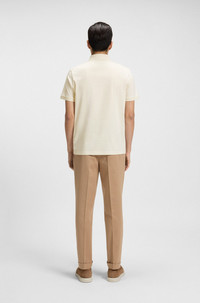SIZE AND FIT The model wears a size M and is 6'1" tall with a, 36" chest, 29" waist and 36" hips. DETAILS L-Perry 14 - 50494980 A refined polo shirt by BOSS Menswear, cut to a regular fit in mercerized Italian cotton and trimmed with mother-of-pearl buttons. Regular fit Neckline: Flat-knit collar Number of buttons: 3 Short sleeves Flat-knit cuffs Standard length QUALITY & CARE INSTRUCTIONS Quality: 100% Cotton Do Not Bleach Do Not Tumble Dry Cold, gentle machine wash; reduced spin speed. Reduced Dry Clean Iron Low Heat