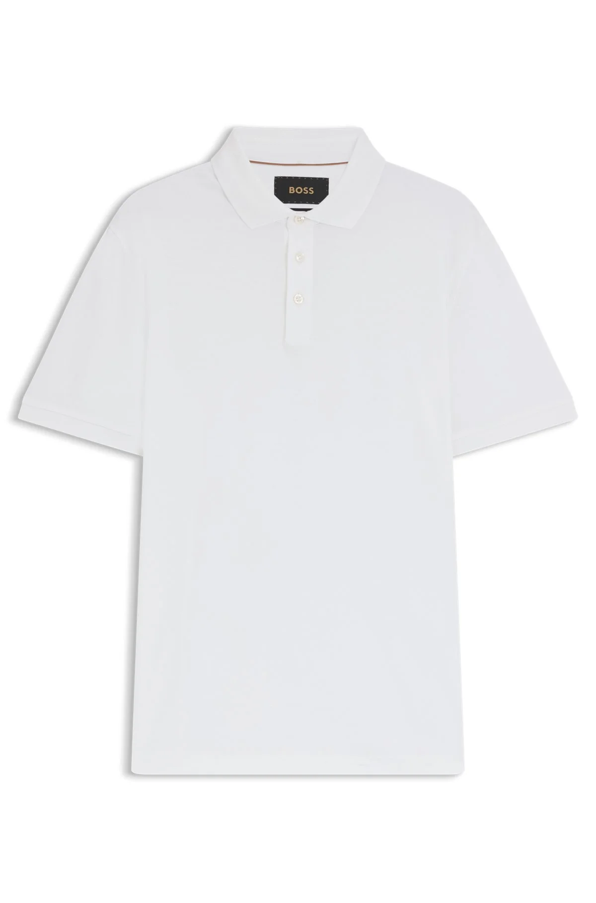 SIZE AND FIT The model wears a size L and is 6'2" tall with a, 39" chest, 30" waist and 36" hips. DETAILS L-Perry 14 - 50494980 A refined polo shirt by BOSS Menswear, cut to a regular fit in mercerized Italian cotton and trimmed with mother-of-pearl buttons. Regular fit Neckline: Flat-knit collar Number of buttons: 3 Short sleeves Flat-knit cuffs Standard length QUALITY & CARE INSTRUCTIONS Reduced Dry Clean Do Not Bleach Cold, gentle machine wash; reduced spin speed. Do Not Tumble Dry Quality: 100% Cotton Iron Low Heat