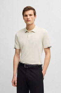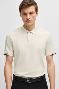 SIZE AND FIT The model wears a size M and is 6'2" tall with a, 39" chest, 30" waist and 36" hips. DETAILS Parlay 147 - 50467113 A modern polo shirt detailed with signature stripes by BOSS. Crafted in pure-cotton pique with a mercerized finish, this short-sleeved polo shirt is trimmed with a tonal BOSS logo. Regular fit Neckline: Flat-knit collar Number of buttons: 2 Short sleeves Flat-knit cuffs Standard length QUALITY & CARE INSTRUCTIONS Quality: 100% Cotton Iron Low Heat Machine Wash Cold Gentle Do Not Dry Clean Do Not Bleach Do Not Tumble Dry