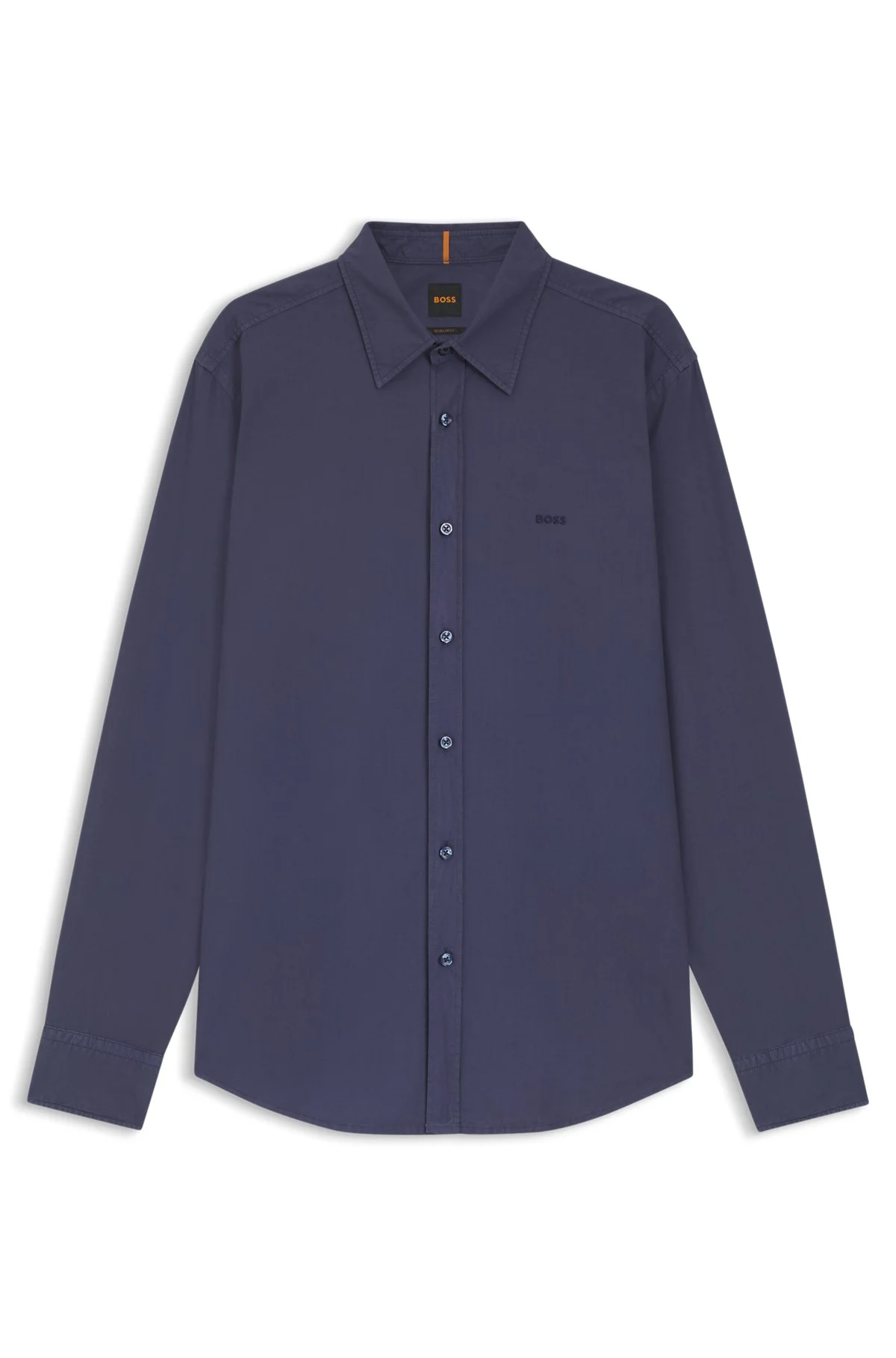 SIZE AND FIT The model wears a size M and is 6'0" tall with a, 31" chest, 26" waist and 35" hips. DETAILS Relegant_6_M - 50518304 An elegant regular-fit shirt by BOSS Menswear. Featuring an embroidered logo, this long-sleeved design is crafted in breathable poplin. Regular fit Kent collar Patch chest pockets Barrel cuffs QUALITY & CARE INSTRUCTIONS Iron Low Heat Machine Wash Cold Quality: 100% Cotton Do Not Bleach Do Not Tumble Dry Do Not Dry Clean
