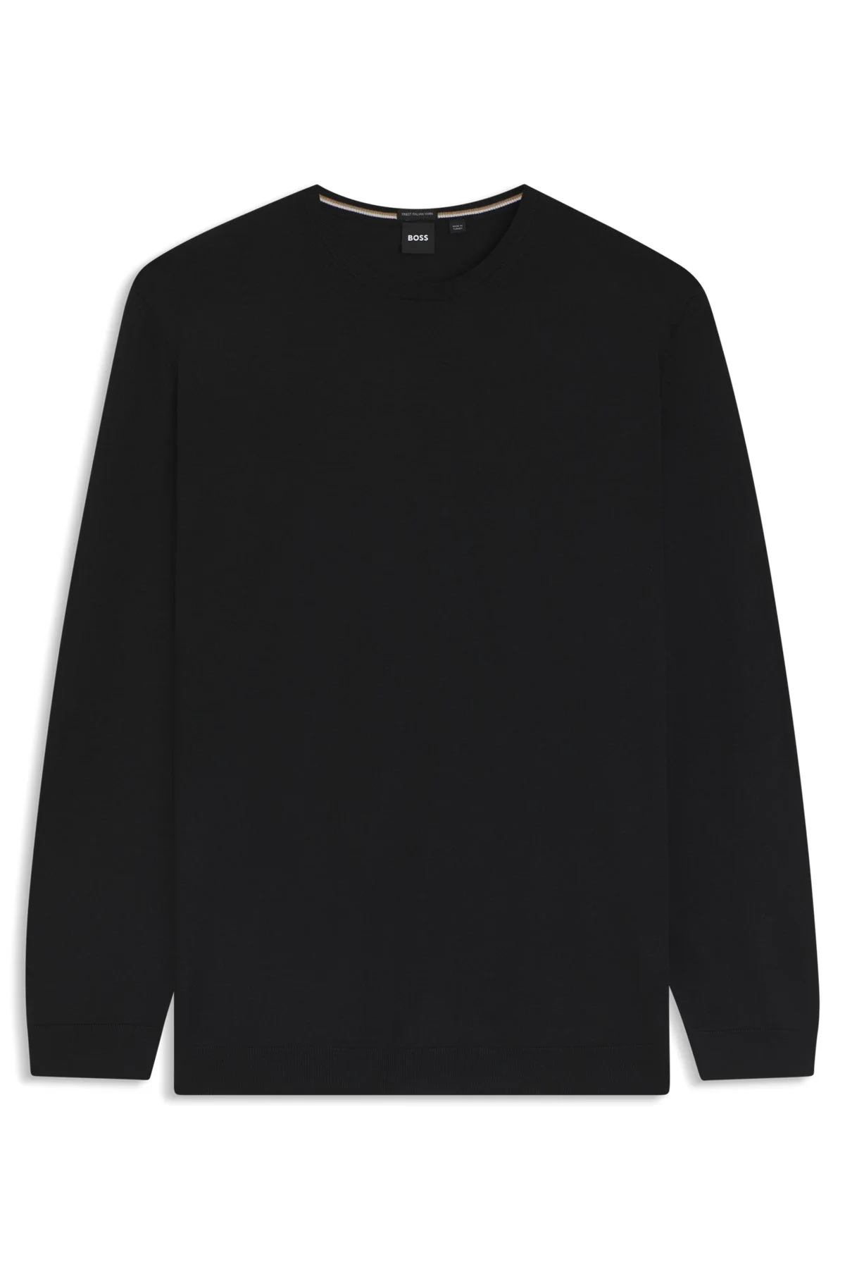 DETAILS A cozy everyday layer, this BOSS Menswear sweater is knitted in the finest virgin wool for natural temperature control. Regular fit. Classic crew neckline. Regular fit Neckline: Crew neck Long sleeves Standard length Leno-P_B&T - 50560656 QUALITY & CARE INSTRUCTIONS Do Not Bleach Dry Clean Only Do Not Tumble Dry Cold, gentle machine wash; reduced spin speed. Iron Medium Heat Material: 100% Virgin wool