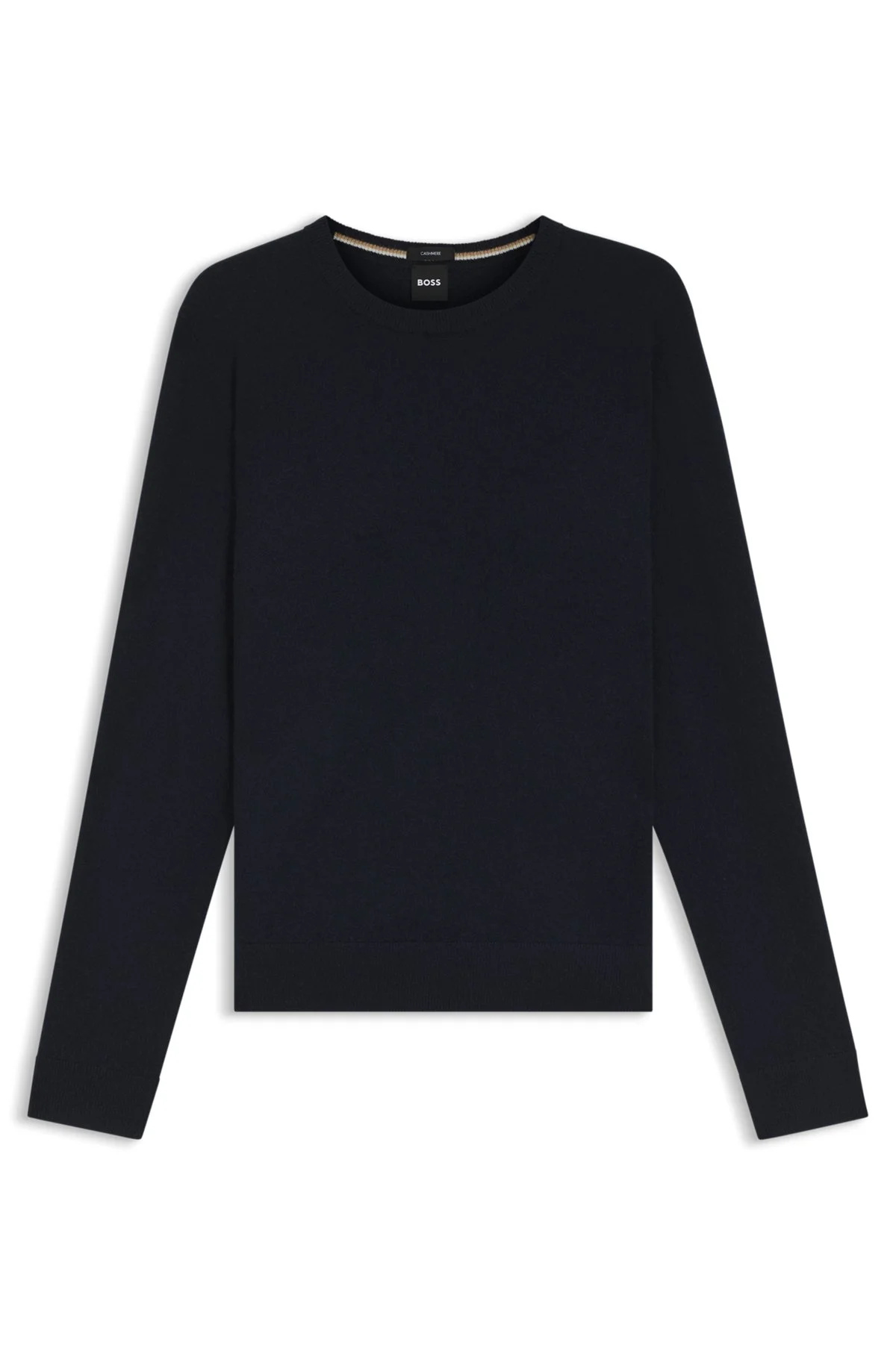 SIZE AND FIT The model wears a size M and is 6'1" tall with a, 36" chest, 29" waist and 37" hips. DETAILS For temperature regulation through all four seasons, this BOSS Menswear sweater is a luxe option. Knitted in 100% cashmere with an easy straight fit. Regular fit Neckline: Crew neck Long sleeves Standard length H-Emigliore - 50546690 QUALITY & CARE INSTRUCTIONS Cold, gentle machine wash; reduced spin speed. Do Not Bleach Iron Medium Heat Quality: 100% Cashmere Reduced Dry Clean Do Not Tumble Dry