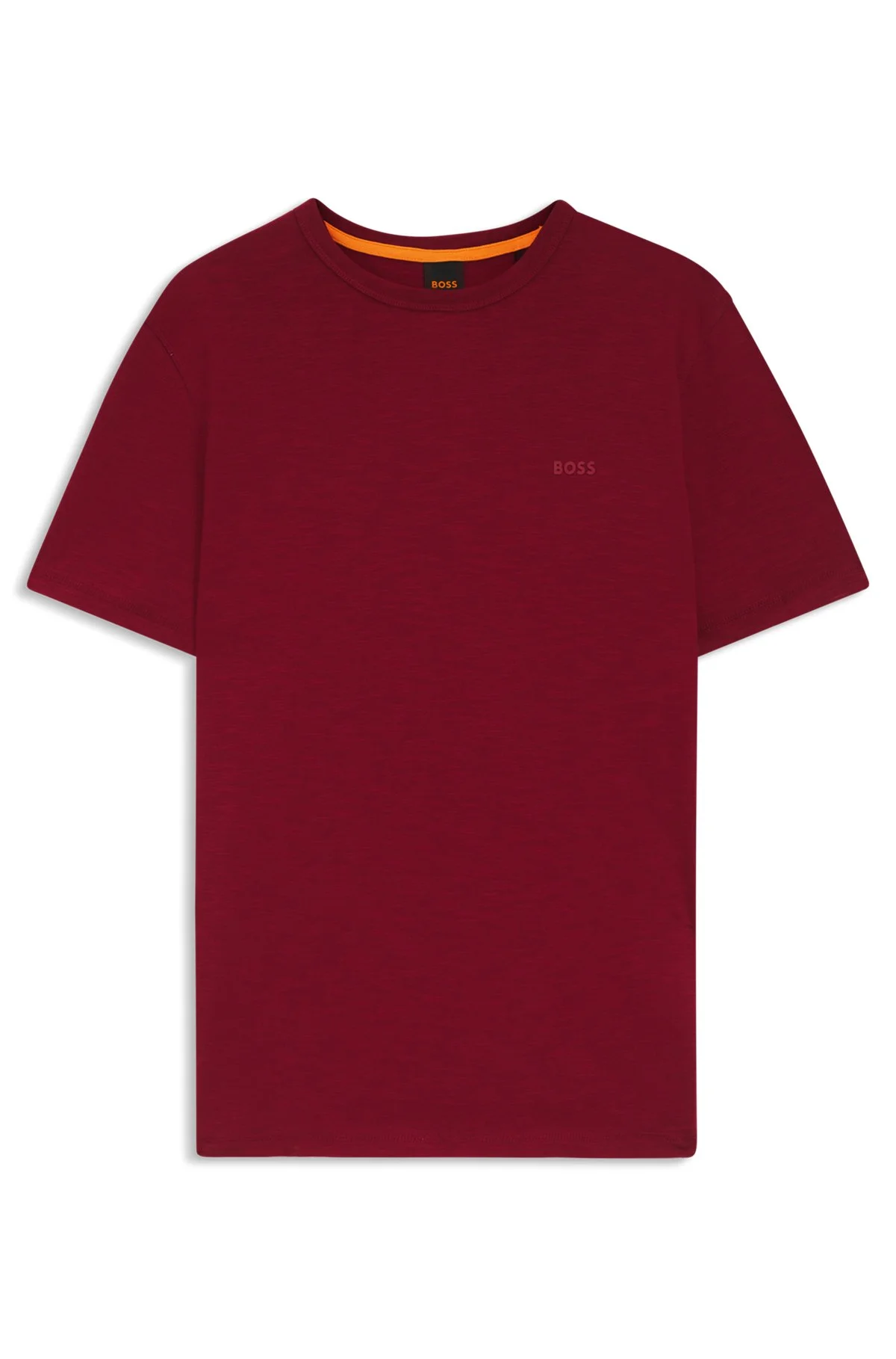 DETAILS An essential T-shirt by BOSS Menswear. Featuring a logo at the left chest, this regular-fit top is crafted in soft slub-cotton jersey. Regular fit Neckline: Crew neck Short sleeves Tegood - 50508243 QUALITY & CARE INSTRUCTIONS Do Not Tumble Dry Iron Low Heat Do Not Dry Clean Machine Wash Cold Gentle Do Not Bleach Quality: 100% Cotton