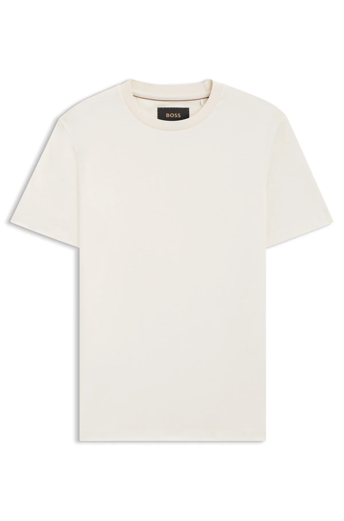 SIZE AND FIT The model wears a size M and is 6'1" tall with a, 33" chest, 31" waist and 33" hips. DETAILS L-Tesar 14 - 50509277 Elevate your basics with the extra-soft mercerized cotton of this BOSS Menswear T-shirt. Cut to a timeless regular fit. Regular fit Neckline: Crew neck Short sleeves Standard length QUALITY & CARE INSTRUCTIONS Do Not Bleach Do Not Tumble Dry Cold, gentle machine wash; reduced spin speed. Quality: 100% Cotton Reduced Dry Clean Iron Low Heat