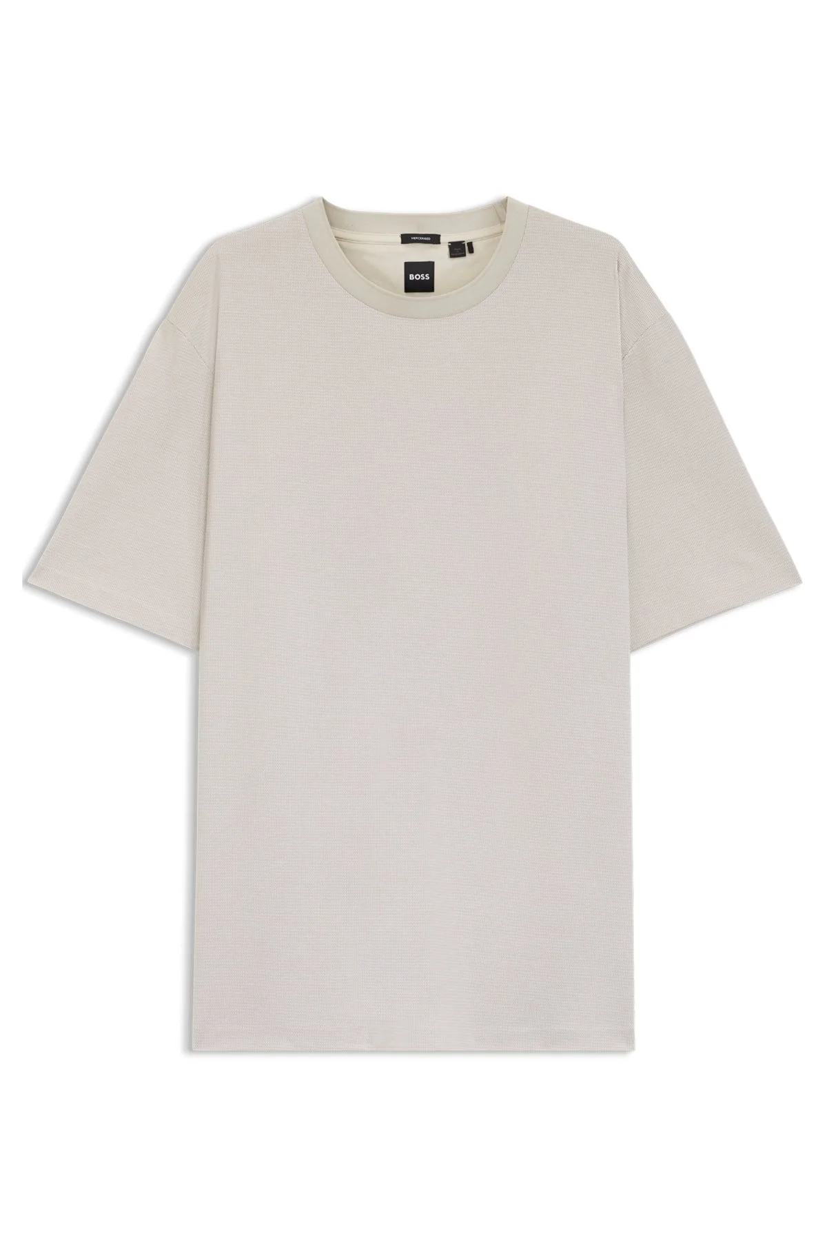 DETAILS Featuring a three-tone micro pattern, this BOSS Menswear T-shirt is crafted in mercerized cotton for a super-soft feel. Casual straight fit. Regular fit Neckline: Crew neck Standard length BT-Thompson 432 - 50561206 QUALITY & CARE INSTRUCTIONS Material: 100% Cotton Machine Wash Cold Gentle Do Not Tumble Dry Reduced Dry Clean Iron Low Heat Do Not Bleach