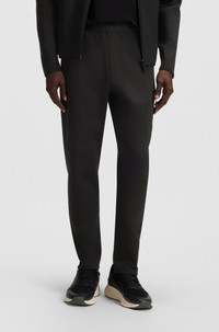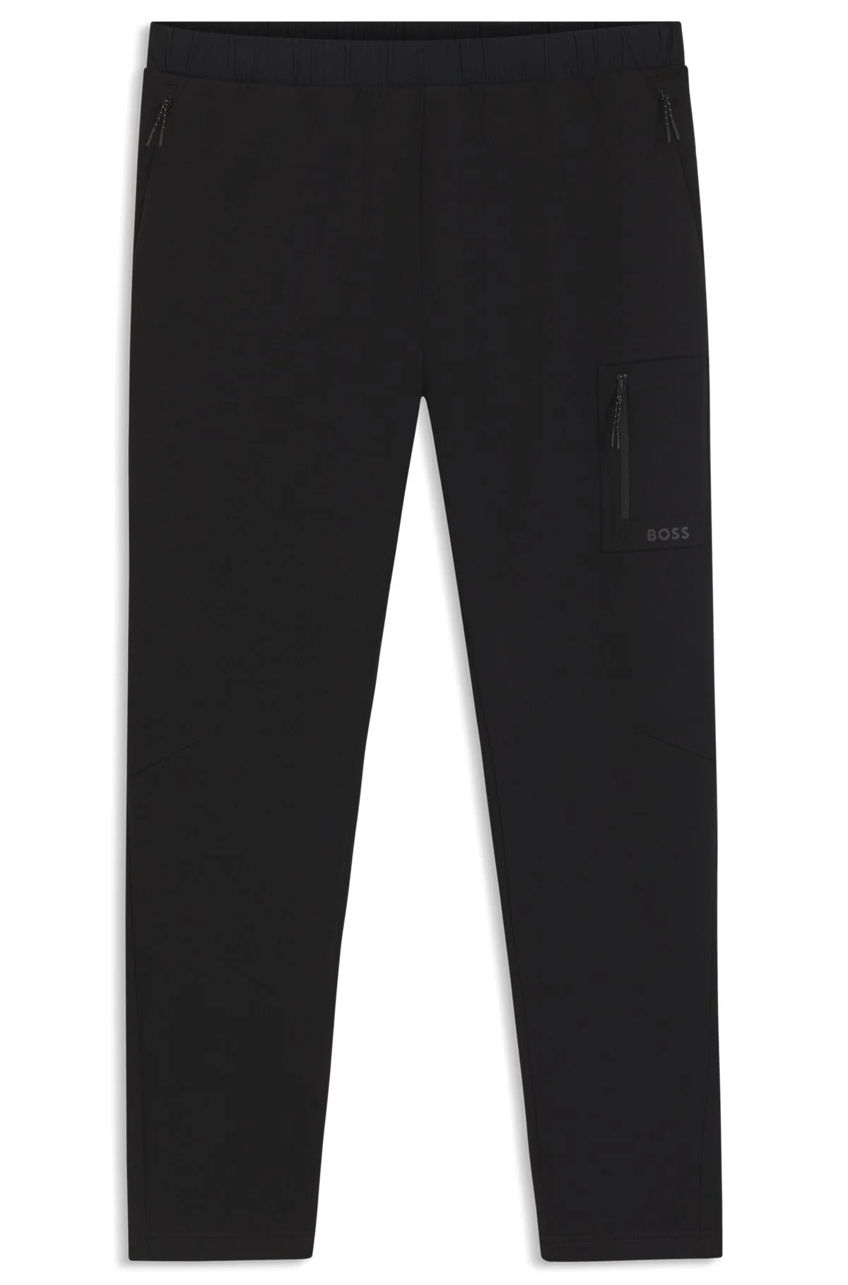 DETAILS Pants Urban Tech - 50543913 With secure zipped pockets and decorative reflective accents, these regular BOSS Menswear tracksuit bottoms are an active essential. Stretch blend with cotton. Embossed pocket detail. Regular fit Drawstring Pockets bottom front: Zip pockets Pockets bottom back: Welt pocket QUALITY & CARE INSTRUCTIONS Quality: 39% Modal, 36% Cotton, 18% Polyester, 7% Elastane Do Not Dry Clean Cold, gentle machine wash; reduced spin speed. Do Not Tumble Dry Do Not Bleach Iron Low Heat