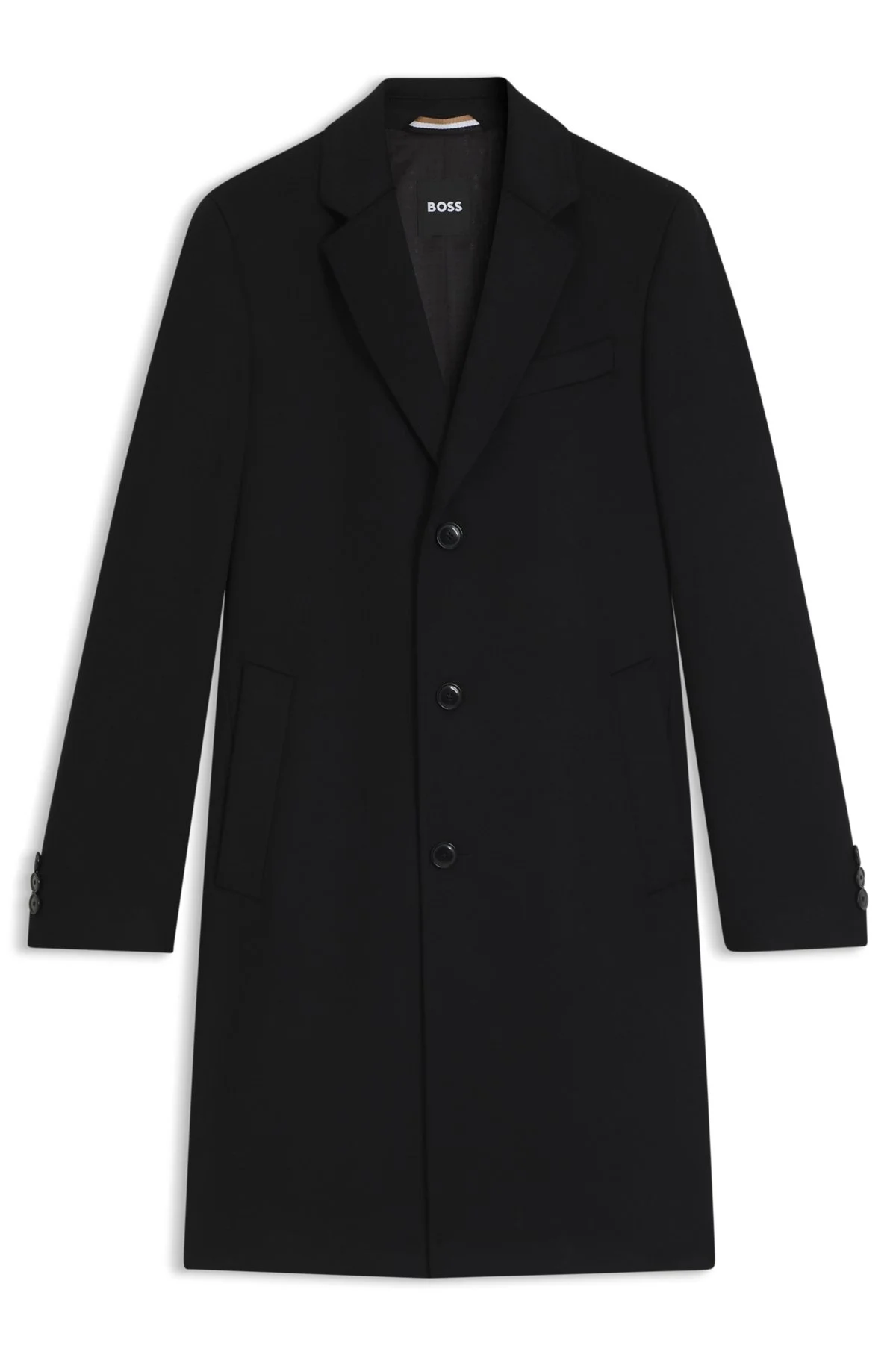 DETAILS H-Hyde-254 - 50549187 A timeless option for layering over tailoring, this BOSS Menswear coat is crafted in soft wool blended with luxurious cashmere. Slim fit Notch lapels Slim fit Notched lapels Number of buttons: 3 Welt chest pockets Pockets top: Side-entry pockets Button cuffs Back vent Fully lined QUALITY & CARE INSTRUCTIONS Do Not Tumble Dry Reduced Dry Clean Iron Low Heat Quality: 90% Wool, 10% materialcode.RWS, Sleeve lining: 100% Viscose, Body Lining: 100% Viscose Do Not Wash Do Not Bleach