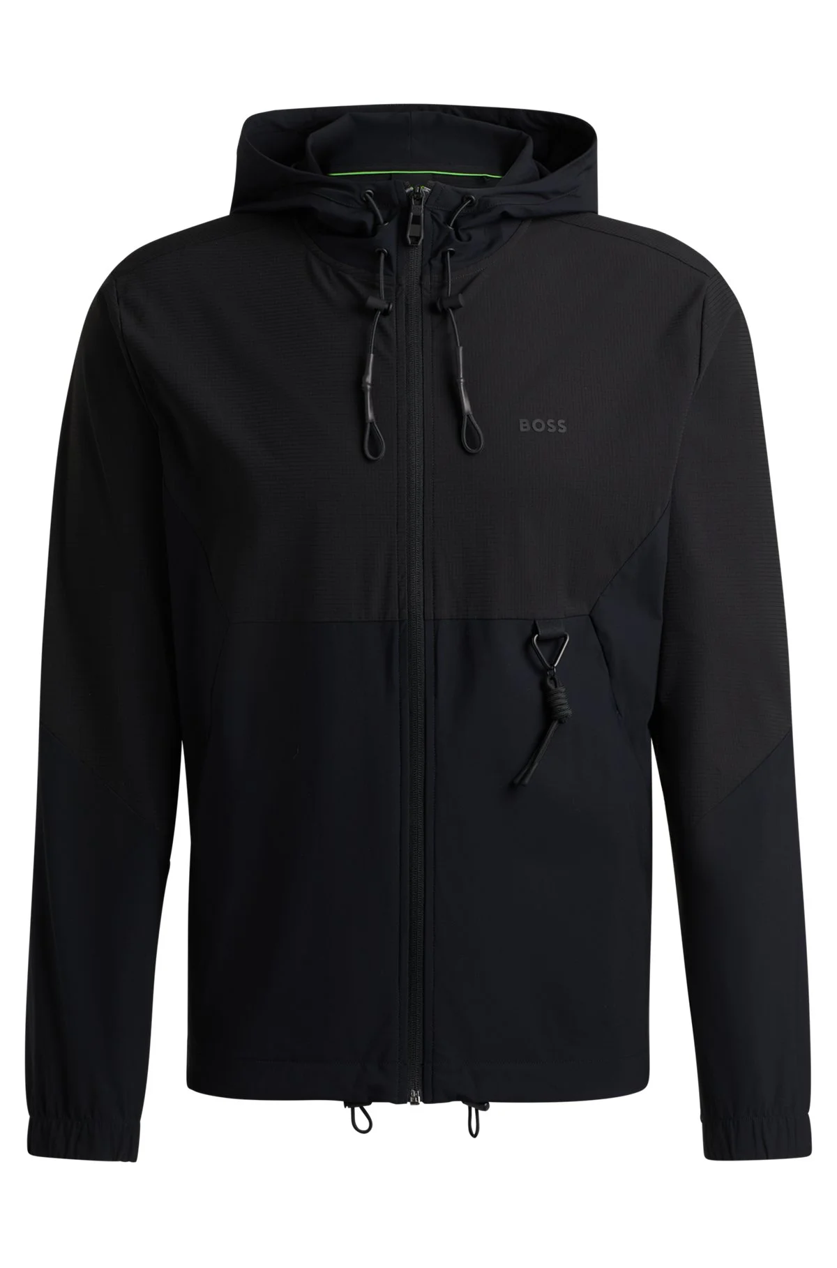 SIZE AND FIT The model wears a size M and is 6'2" tall with a, 38" chest, 29" waist and 38" hips. DETAILS Swoven - 50519518 A regular-fit zip-up hoodie in quick-dry material by BOSS Menswear. Featuring a decorative reflective logo, this layer has an active cooling function. Regular fit Neckline: Hooded Fastening top: Zip closure Pockets top: Side-entry pockets Long sleeves Standard length QUALITY & CARE INSTRUCTIONS Quality: 76% Polyamide, 24% Elastane, upper part: 73% Polyamid, 27% Elastane Do Not Tumble Dry Do Not Bleach Machine Wash Cold Gentle Iron Low Heat Do Not Dry Clean