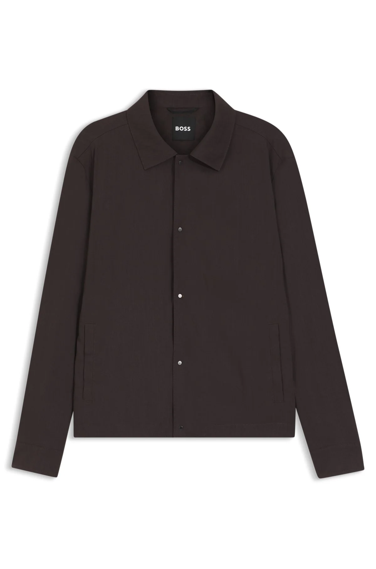 SIZE AND FIT Relaxed fit The model wears a size 38R and is 6'1" tall with a, 34" chest, 30" waist and 36" hips. DETAILS With added stretch for comfort, this BOSS Menswear overshirt comes in a breathable linen blend. Machine washable for easy care. Modern relaxed fit. Relaxed fit Fastening top: Button closure Number of buttons: 4 or more buttons Pockets top: Welt pockets Inside welt pockets Button cuffs Fully lined P-Carper-Coach-WG261 - 50561971 QUALITY & CARE INSTRUCTIONS Do Not Bleach Cold, gentle machine wash; reduced spin speed. Reduced Dry Clean Material: 66% Linen, 32% Viscose, 2% Elastane, Lining: 60% Polyamid, 40% Polyester Do Not Tumble Dry Iron Low Heat