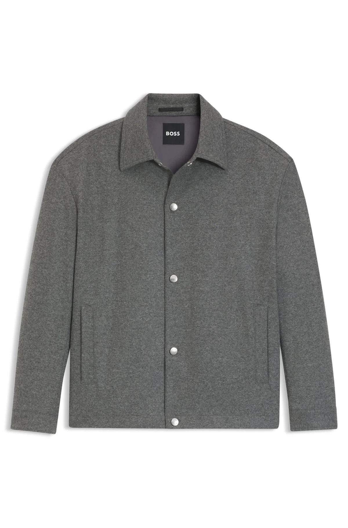 SIZE AND FIT The model wears a size 38R and is 6'0" tall with a, 37" chest, 29" waist and 36" hips. DETAILS Inspired by the classic coach jacket, this BOSS Menswear overshirt has an easy relaxed fit for layering. Softly brushed flannel with wool and stretch. Relaxed fit Fully lined P-Craig-J-Coach-254 - 50551517 QUALITY & CARE INSTRUCTIONS Do Not Tumble Dry Do Not Bleach Material: 25% Viscose, 32% Polyester, 25% Polyamid, 14% Wool, 4% Elastane, Lining: 100% Polyester, pocketing: 100% Cotton, Wadding: 95% Polyester, 5% Polyamid Do Not Wash Reduced Dry Clean Iron Low Heat