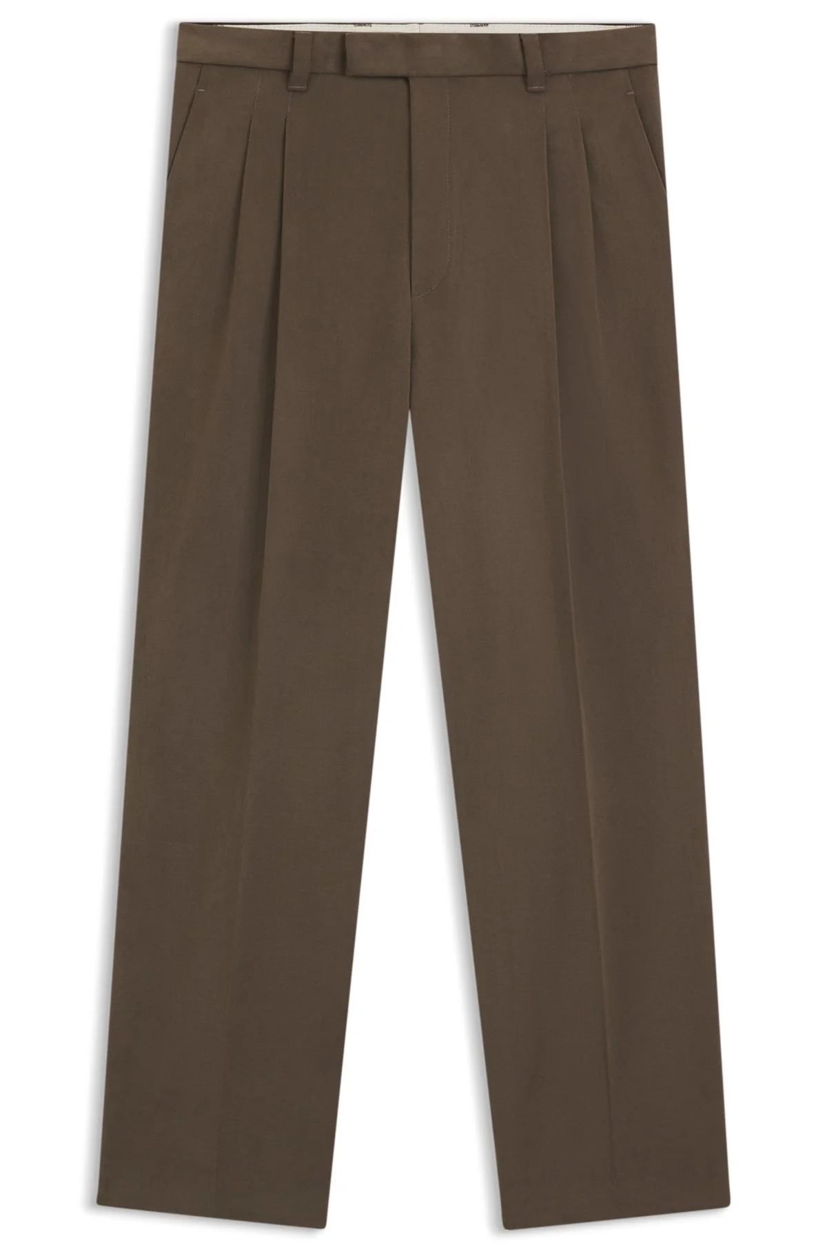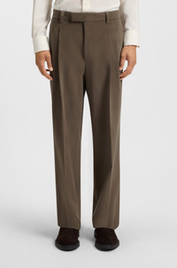 SIZE AND FIT The model wears a size 32R and is 6'1" tall with a, 32" chest, 28" waist and 34" hips. DETAILS Invest in formal style with the relaxed fit of these BOSS Menswear trousers. Crafted in stretch cotton with a brushed, mercerized finish. Double pleats. Tapered fit Hook and zip closure Pleat front Pockets bottom front: Side slash pockets Pockets bottom back: Welt pocket Partially lined C-Pat-DPL-BB-254 - 50557358 QUALITY & CARE INSTRUCTIONS Reduced Dry Clean Do Not Wash Do Not Tumble Dry Iron Low Heat Do Not Bleach Material: 98% Cotton, 2% Elastane, pocketing: 65% Polyester, 35% Cotton