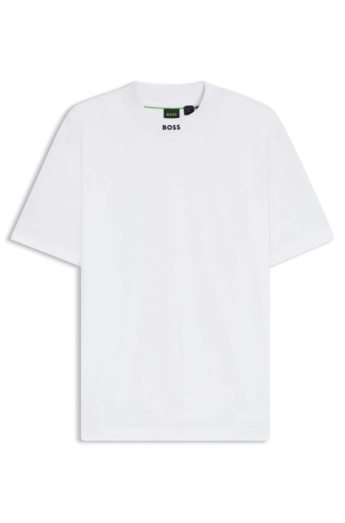 DETAILS Tee Collar Zone - 50551139 Add impact to basic or layered looks with this relaxed-fit BOSS Menswear T-shirt, showcasing a contrast logo at the collar. Breathable stretch-cotton jersey. Relaxed fit Neckline: Crew neck Short sleeves Standard length QUALITY & CARE INSTRUCTIONS Quality: 95% Cotton, 5% Elastane Iron Low Heat Do Not Tumble Dry Machine Wash Cold Gentle Do Not Dry Clean Do Not Bleach