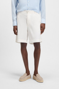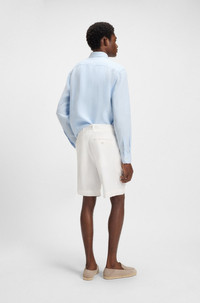 DETAILS C-Kai-DPL-Shorts - 50546320 With front pleats emphasizing the relaxed fit, these BOSS Menswear shorts are an essential summer update. Breathable twill with stretch. Relaxed fit Regular rise Button and zip closure Pockets bottom front: French pocket Pockets bottom back: Welt pocket with buttons Standard length QUALITY & CARE INSTRUCTIONS Iron Low Heat Reduced Dry Clean Do Not Tumble Dry Quality: 98% Cotton, 2% Elastane, pocketing: 65% Polyester, 35% Cotton Machine Wash Cold Gentle Do Not Bleach