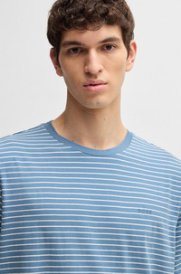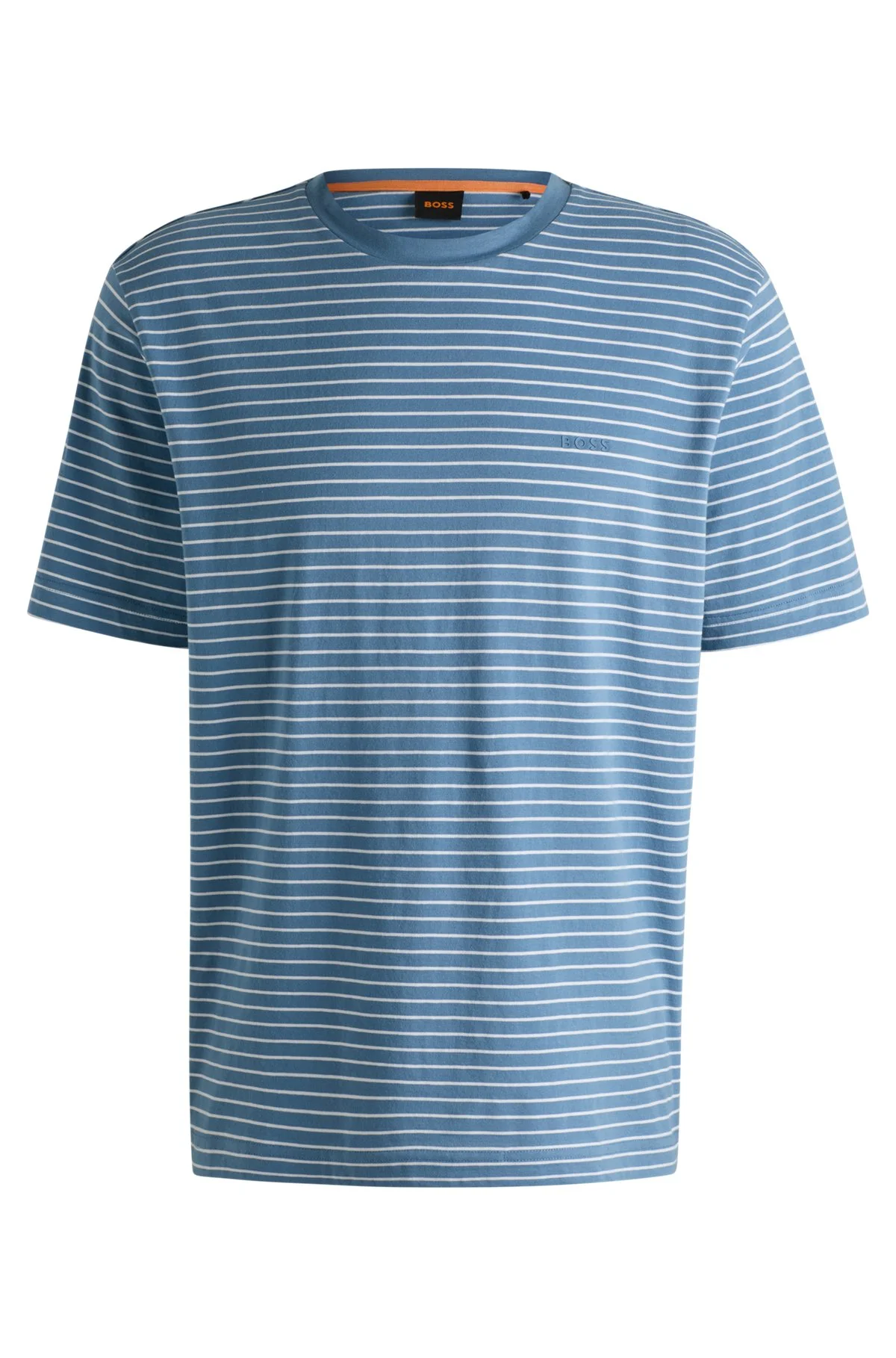 SIZE AND FIT The model wears a size L and is 6'2" tall with a, 37" chest, 30" waist and 37" hips. DETAILS TalesStripe - 50499334 An essential T-shirt by BOSS Menswear, cut to a relaxed fit in soft jersey with horizontal stripes and a coordinating crew neckline. Relaxed fit Neckline: Crew neck Short sleeves QUALITY & CARE INSTRUCTIONS Machine Wash Cold Gentle Quality: 100% Cotton Do Not Tumble Dry Iron Low Heat Do Not Bleach Reduced Dry Clean