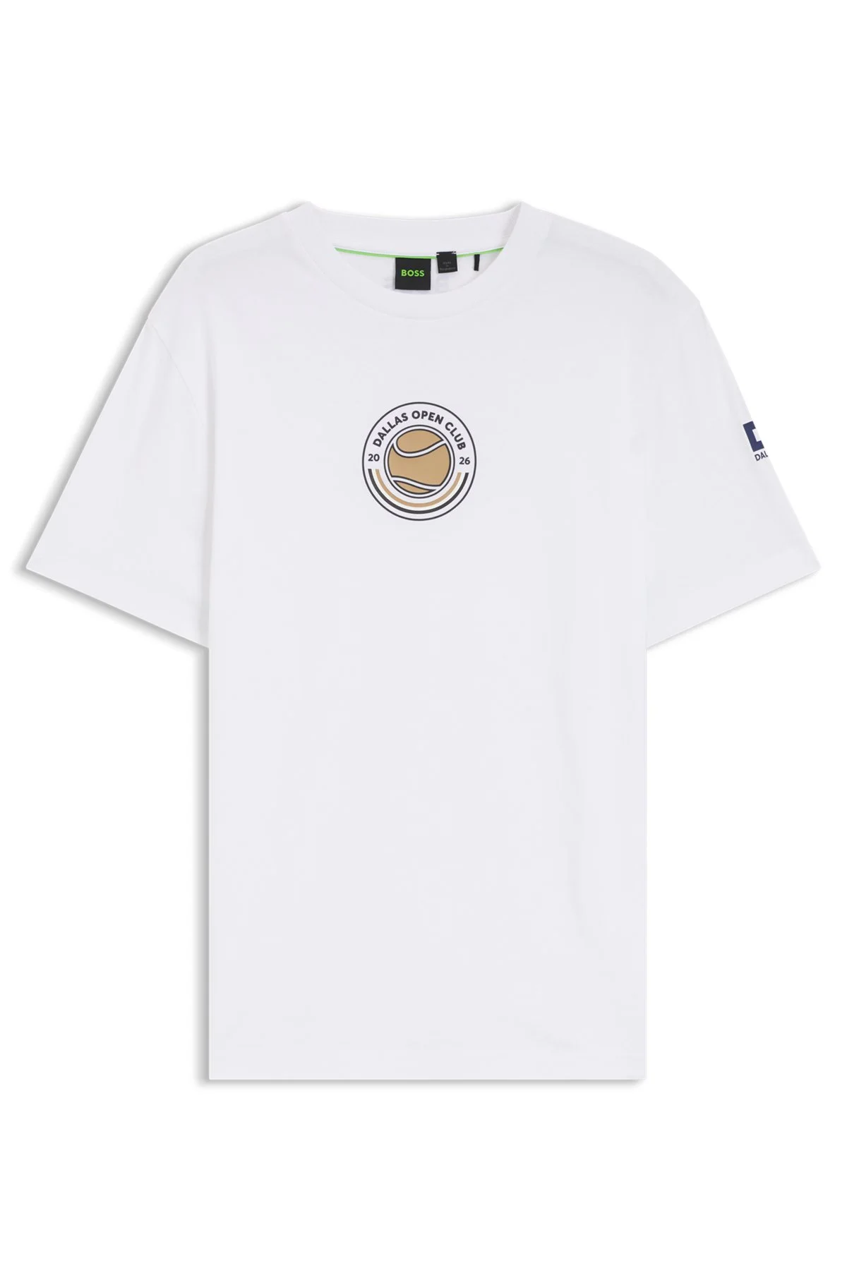 SIZE AND FIT The model wears a size M and is 6'2" tall with a, 38" chest, 30" waist and 35" hips. DETAILS Bringing a sporty touch to casuals, this relaxed-fit BOSS Menswear T-shirt is cut in cotton jersey. Tennis artwork at chest and sleeve. Contrast logo. This is an official style of the Dallas Open. TS_Dallas-Open26 - 50565145 QUALITY & CARE INSTRUCTIONS Material: 100% Cotton Machine Wash Cold Gentle Do Not Bleach Do Not Tumble Dry Iron Low Heat Do Not Dry Clean