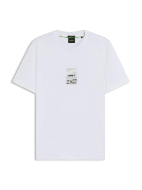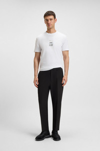 SIZE AND FIT The model wears a size M and is 6'2" tall with a, 38" chest, 31" waist and 38" hips. DETAILS Tee Photoprint - 50545869 Featuring intricate photo artwork with raised and embroidered lines, this relaxed-fit BOSS Menswear T-shirt creates fresh style. Comfortable stretch cotton. Crew neckline. Relaxed fit Neckline: Crew neck Short sleeves Standard length QUALITY & CARE INSTRUCTIONS Machine Wash Cold Gentle Iron Low Heat Do Not Bleach Do Not Dry Clean Quality: 95% Cotton, 5% Elastane Do Not Tumble Dry