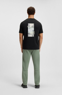 SIZE AND FIT The model wears a size M and is 6'0" tall with a, 38" chest, 29" waist and 38" hips. DETAILS Cut in a stretchy cotton blend, this BOSS Menswear T-shirt makes a fresh statement with photo prints and decorative reflective details. Relaxed fit Logo accent. Relaxed fit Neckline: Crew neck Short sleeves Standard length Tee Stripe Zone - 50548093 QUALITY & CARE INSTRUCTIONS Do Not Tumble Dry Iron Low Heat Do Not Dry Clean Machine Wash Cold Gentle Do Not Bleach Quality: 72% Cotton, 23% Lyocell, 5% Elastane