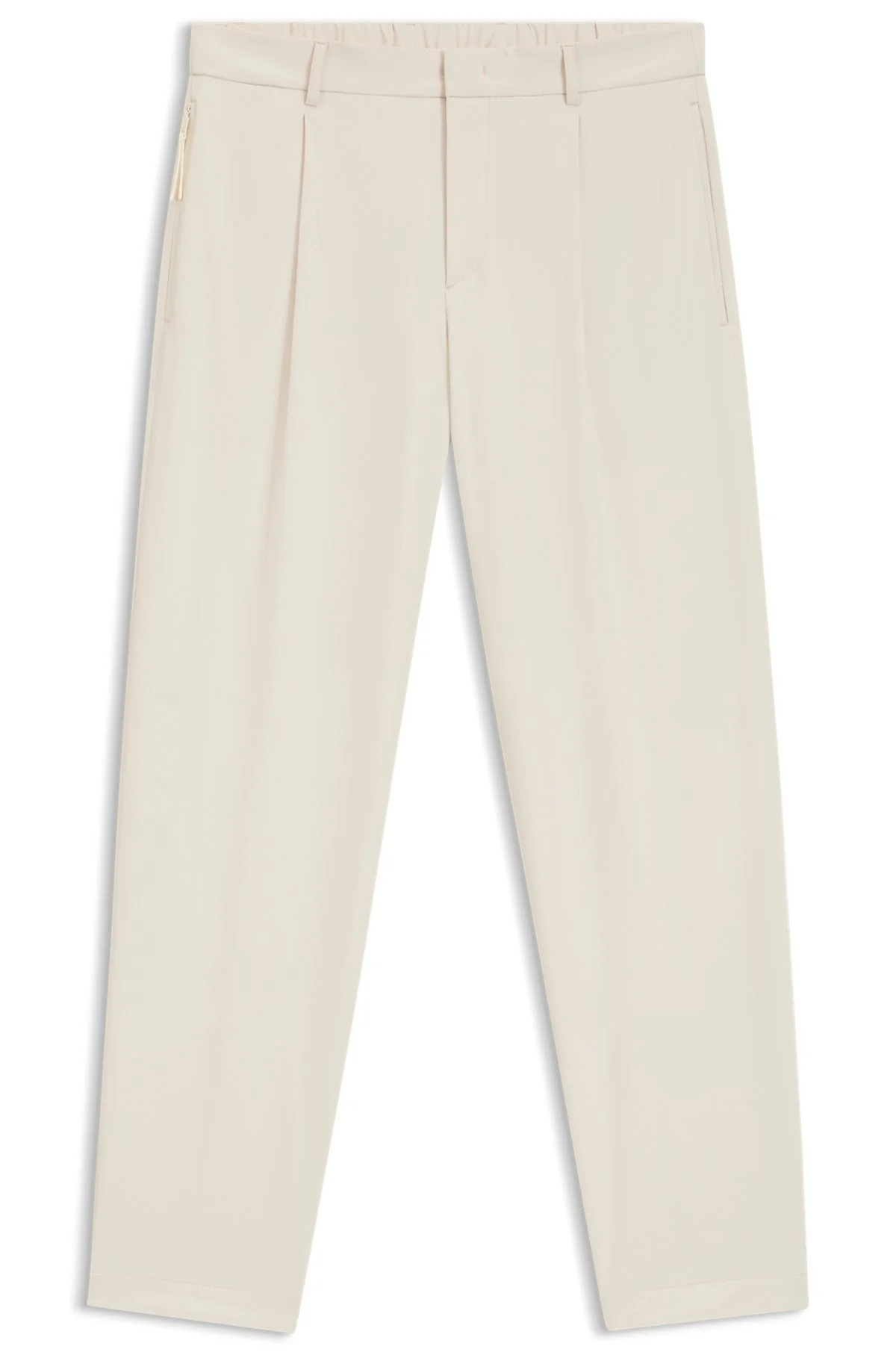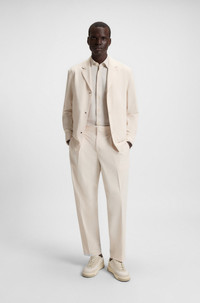 SIZE AND FIT The model wears a size 32R and is 6'1" tall with a, 33" chest, 24" waist and 36" hips. DETAILS P-Phil-PLCWWGPK-253F - 50543578 With added stretch for comfort, these relaxed-fit BOSS Menswear trousers are ideal for business travel. Water-repellent protection. Machine washable. Refined micro pattern. Relaxed fit Zip closure Pockets bottom front: Side zip pocket Pockets bottom back: Welt pocket Partially lined QUALITY & CARE INSTRUCTIONS Quality: 85% Polyester, 15% Elastane, pocketing: 58% Polyamid, 42% Polyester Do Not Dry Clean Do Not Iron Machine Wash Cold Gentle Do Not Tumble Dry Do Not Bleach