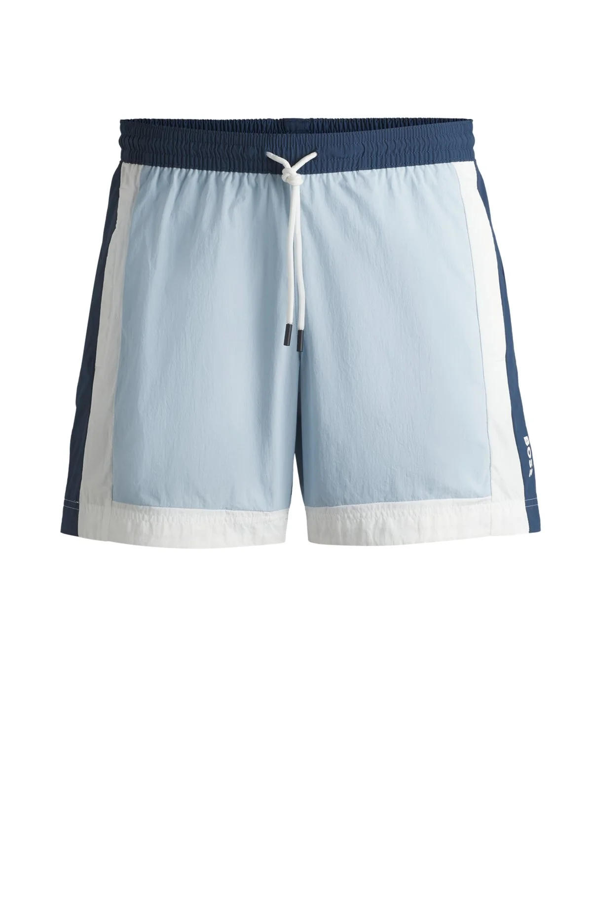 COLOR-BLOCK SWIM SHORTS WITH PRINTED LOGO