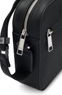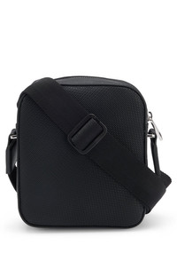 DETAILS Ray_M_NS_Zip - 50541518 Embossed with monograms on the front and back, this BOSS Menswear reporter bag is an everyday essential. Synthetic coated fabric. Signature-stripe detail. Polished trims. Synthetic coated fabric, sometimes referred to as faux leather, is a fabric designed to resemble real leather, and/or display a matte, glossy, smooth, or textured, coated appearance. Measurements: 19 x 17 x 6cm Length: 17,0 cm (6.7 inches) Width: 6,0 cm (2.4 inches) Height: 19,0 cm (7.5 inches) Fastening top: Zip closure 1 inside zip pocket 1 inside open pocket Hardware finishing: Polished silver hardware QUALITY & CARE INSTRUCTIONS Quality: 70% Polyurethane (62% recycled), 30% Polyester, Lining: 100% Polyester, Facing: 85% Polyamide, 70% Polyurethane (62% recycled), 30% Polyester, 15% Polyester
