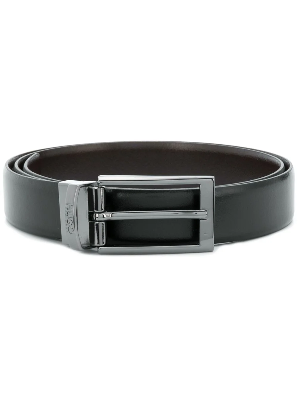 reversible belt Black leather reversible belt from BOSS featuring a silver-tone buckle fastening, an adjustable fit and an engraved logo. Made in Italy Composition Calf Leather 100% SIZE & FIT Measurement WIDTH 1.18 in(3 cm) TOTAL LENGTH 37.4 in(95 cm) Minimum Length 33.46 in(85 cm)