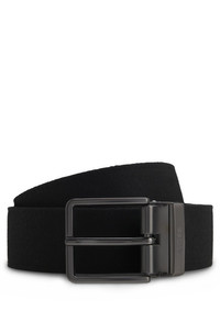 SIZE AND FIT The model wears a size 34 and is 6'2" tall with a, 35" chest, 29" waist and 35" hips. DETAILS Combining tape with monogrammed leather, this 3.5cm BOSS Menswear belt is a versatile accessory. Logo-engraved keeper. Gunmetal buckle. Hardware finishing: Matte gunmetal hardware Engraved logo on closure O-Ther_TpLt_Sr35_gBm - 50553341 QUALITY & CARE INSTRUCTIONS Material: 100% Cow leather, Facing: 91% Polyester, 9% Elastane