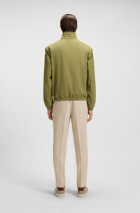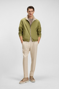 SIZE AND FIT The model wears a size 38R and is 6'1" tall with a, 33" chest, 31" waist and 33" hips. DETAILS L-Core1 - 50530699 A reversible jacket by BOSS Menswear, with a lightweight filling. Featuring a two-way zip through the center front, this adaptable jacket features peached fabric on one side and stretch material on the other. Press-stud pockets complete this timeless design. Regular fit Stand collar Fastening top: Zip closure Pockets top: Single welt pocket Inside zip pockets Elasticized cuffs Fully lined Standard length Fit back length: 65 cm (26 inches) QUALITY & CARE INSTRUCTIONS Do Not Bleach Quality: 100% Polyester, reversible jacket inside: 87% Viscose, 7% Elastane, 6% Polyamid very mild professional wet clean Do Not Tumble Dry Iron Low Heat Do Not Dry Clean Machine Wash Cold Gentle