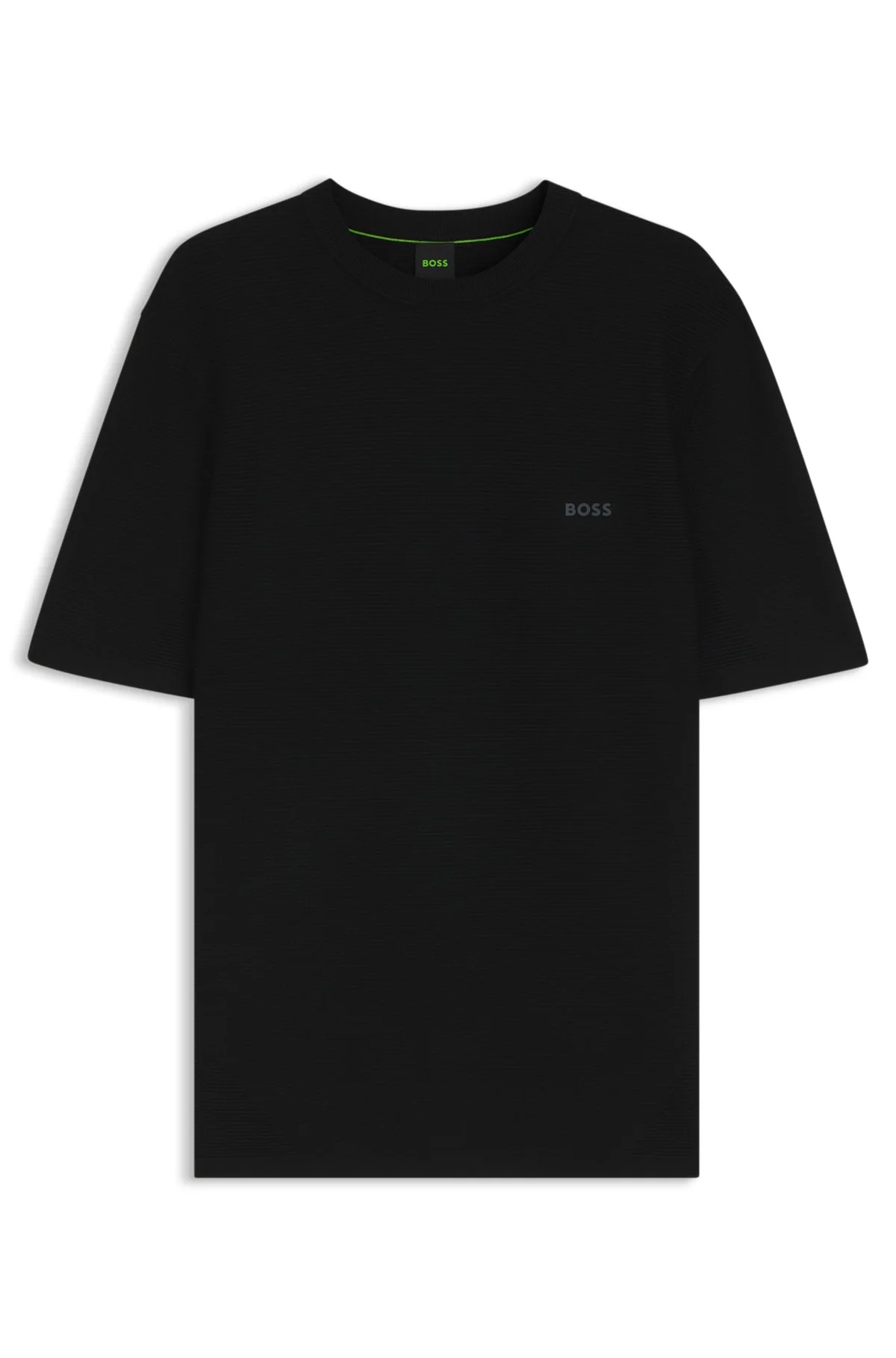 DETAILS K_Urban Commuter T - 50541939 Bodymapped at the rear, this BOSS Menswear sweater is cut to a casual regular fit. Knitted with a ribbed structure in stretch yarn. Regular fit Neckline: Crew neck Short sleeves Standard length QUALITY & CARE INSTRUCTIONS Iron Medium Heat Machine Wash Cold Gentle Do Not Dry Clean Do Not Tumble Dry Quality: 72% Viscose, 28% Polyester Do Not Bleach
