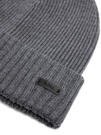 ribbed beanie hat Highlights - Grey - Wool - Knitted construction - Ribbed knit - Round crown - Logo patch to the front - Turn-up brim Imported Composition Virgin Wool 100%