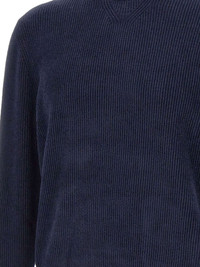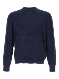 ribbed crew-neck sweater Highlights - Navy blue - Ribbed panel - Crew neck - Long sleeves - Ribbed edges - Mini logo label Imported Composition Viscose 55%, Polyester 35%, Polyamide 7%, Spandex/Elastane 3% Washing instructions Read Manufacturer Guidelines