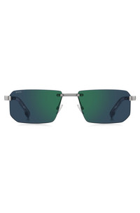 DETAILS Carrying the distinctive Double B monogram, these BOSS Menswear sunglasses have a cutting-edge rimless design. Statement colored lenses with green flash. Flex hinges. Front material: Metal Hinge type: Flex Size lens: 2.24 in (57 mm) (0 inches) Size bridge: 0.67 in (17 mm) (0 inch.) Temple Length: 5.9 in (150 mm) (0 inches) BOSS 1918/S6LB57MT - 58609794
