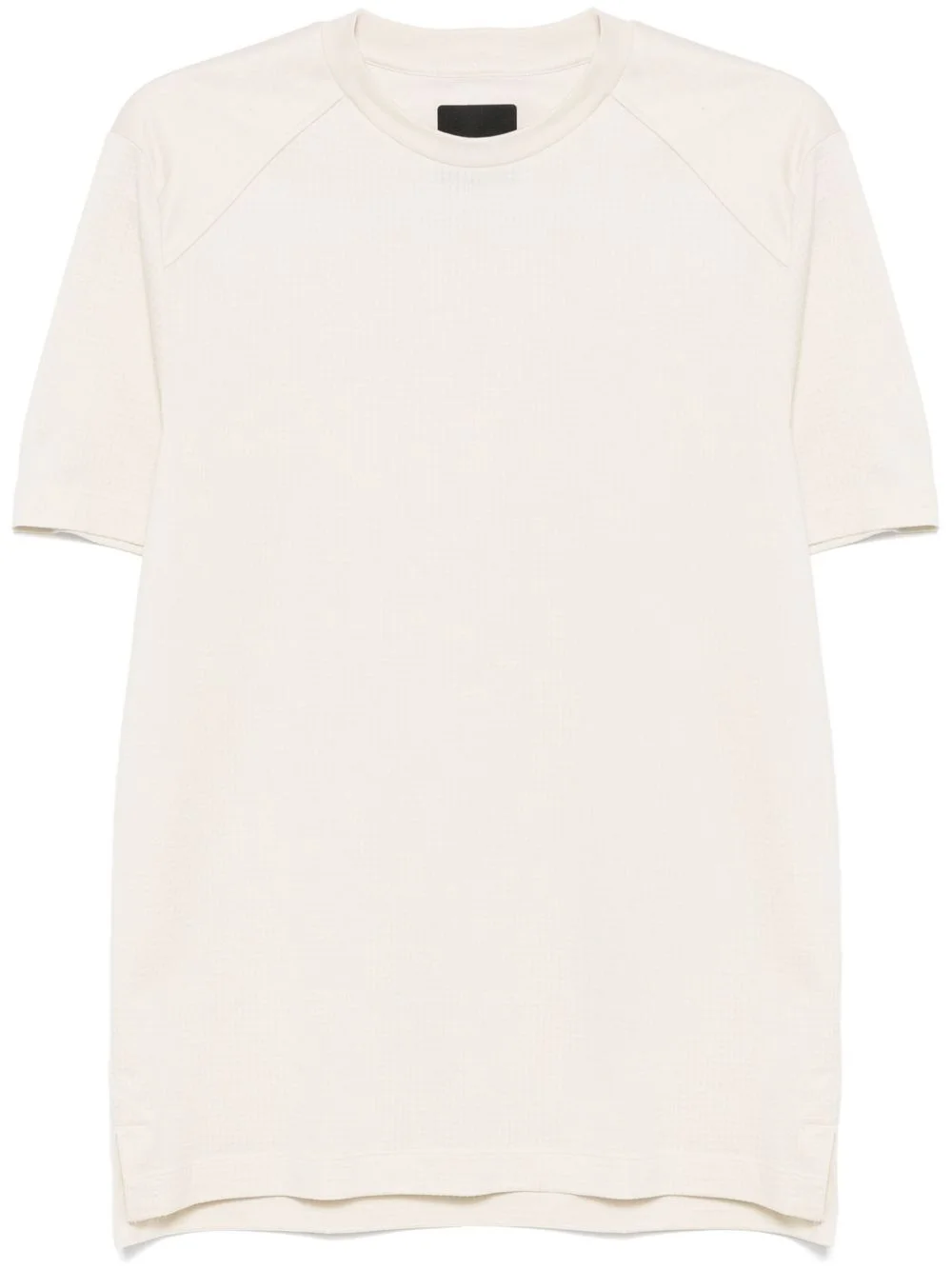 ripstop T-shirt Highlights - Light beige - Combed cotton blend - Stretch-jersey - Ripstop texture - Panelled design - Crew neck - Short sleeves - Mini logo tag to the side - Short side slits - Straight hem Imported Composition Outer: Combed Cotton 95%, Elastane 5% Lining: Cotton 100% SIZE & FIT Model measurements Height 6 ft 1 in(1.86 m) Bust/Chest 36.61 in(93 cm) Hips 37 in(94 cm) Waist 28.74 in(73 cm) FittingInformation Designed to be loose and relaxed, this performance top comfortably allows for high-level movement when worn Made from a midweight stretch fabric, this piece offers elasticity and flexibility when worn Washing instructions Machine Wash