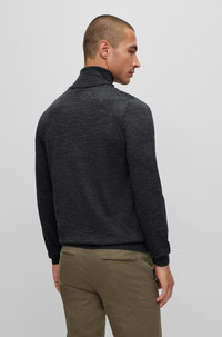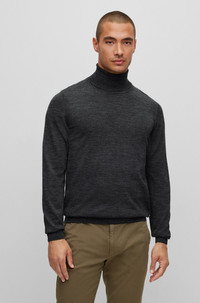 SIZE AND FIT The model wears a size M and is 6'0" tall with a, 37" chest, 28" waist and 33" hips. DETAILS Musso-P - 50468262 BOSS Menswear’s slim-fitting sweater, crafted from breathable merino wool, is your go-to for effortless style across all seasons. Ideal for both crisp office days and relaxed weekends, it combines sleek design with versatile comfort. As seen on David Beckham in the new BOSS ONE underwear/bodywear campaign Neckline: Turtleneck Long sleeves Standard length QUALITY & CARE INSTRUCTIONS Do Not Tumble Dry Dry Clean Only Iron Medium Heat Do Not Bleach Cold, gentle machine wash; reduced spin speed. Quality: 100% Virgin wool