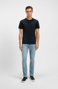 SIZE AND FIT The model wears a size M and is 6'2" tall with a, 36" chest, 31" waist and 35" hips. DETAILS Tessler 150 - 50468395 Cut to a slim fit, this versatile T-shirt by BOSS Menswear is crafted in mercerized fabric and detailed with a signature stripe at the back neck. Slim fit Neckline: Crew neck Short sleeves Standard length QUALITY & CARE INSTRUCTIONS Iron Low Heat Machine Wash Cold Gentle Quality: 100% Cotton Do Not Bleach Do Not Tumble Dry Do Not Dry Clean