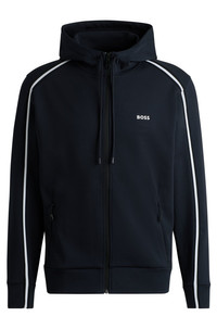 SIZE AND FIT The model wears a size M and is 0'0" tall with a, 0" chest, 0" waist and 0" hips. DETAILS Saggy 1 - 50523912 A zip-up hoodie in a straight fit by BOSS. Featuring tape inserts and a molded logo, this layer is designed in stretch cotton. Regular fit Neckline: Hooded Pockets top: Zip pockets Long sleeves Self fabric cuffs Standard length QUALITY & CARE INSTRUCTIONS Do Not Bleach Do Not Tumble Dry Quality: 62% Cotton, 33% Polyester, 5% Elastane, Lining: 100% Polyester Do Not Dry Clean Iron Low Heat Machine Wash Cold Gentle