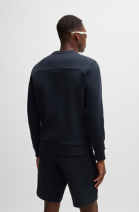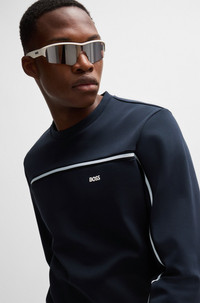 SIZE AND FIT The model wears a size M and is 0'0" tall with a, 0" chest, 0" waist and 0" hips. DETAILS Salbo 1 - 50523913 A signature sweatshirt with a molded logo and tape inserts by BOSS. This layer is cut to a straight fit in stretch cotton. Regular fit Neckline: Crew neck Long sleeves Self fabric cuffs Standard length QUALITY & CARE INSTRUCTIONS Do Not Bleach Do Not Tumble Dry Quality: 62% Cotton, 33% Polyester, 5% Elastane Iron Low Heat Do Not Dry Clean Machine Wash Cold Gentle
