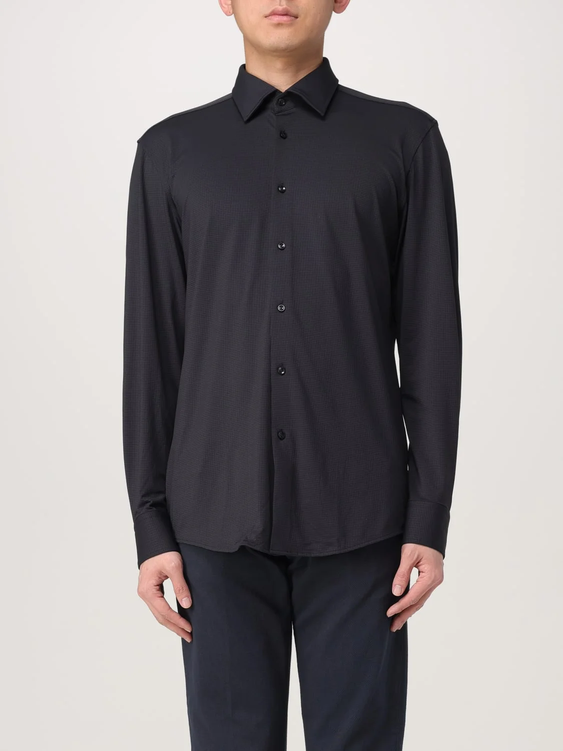 DESCRIPTION - Style: Minimal - Neck: French - Shoulders: Regular - Closure: With buttons - Bottom: With curved hemline - Sleeves: Long sleeve shirts - Materials: Cotton - Pattern: Plain-colored DETAILS AND CARE Composition _ SIZE AND FIT Sizes not available Size and fit Slim fit Designer code: 50533400 001 Giglio Code: G59317 Designer: Boss Collection: Boss Men Category: Clothing Boss