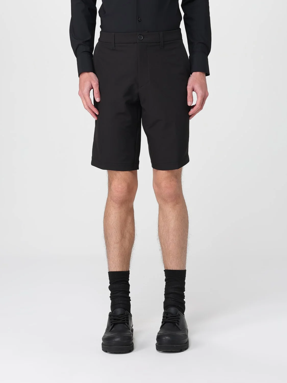 DESCRIPTION - Style: Classic - Model: Chino - Length: Short - Pockets: Back slit pocket - Waist: Medium - Bottom: With straight hemline - Closure: With button and zip - Materials: Crepe - Pattern: Plain-colored DETAILS AND CARE Composition 95 PL 5 EA SIZE AND FIT Sizes not available Size and fit Regular fit Designer code: 50540337 001 Giglio Code: H00879 Designer: Boss Collection: Boss Men Category: Clothing Boss