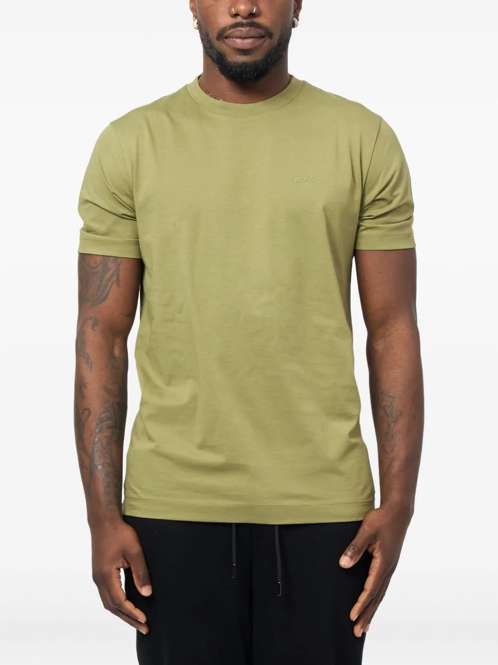 short-sleeve crew-neck T-shirt Highlights - Olive green - Applique logo - Ribbed crew neck - Short sleeves - Straight hem Imported Composition Cotton 100% Washing instructions Read Manufacturer Guidelines