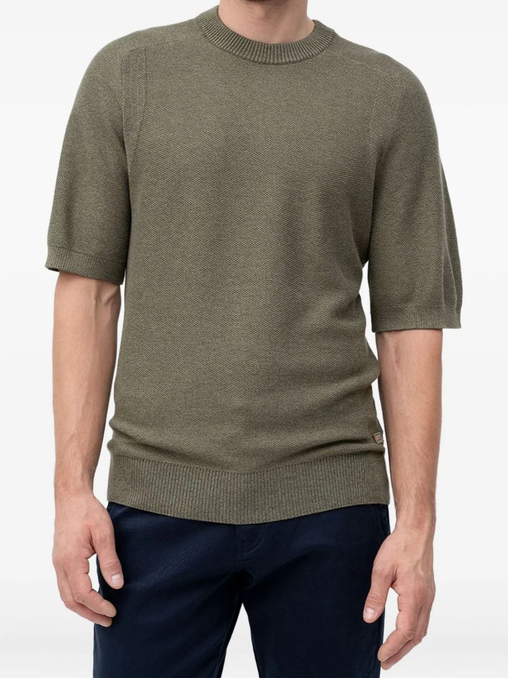 short-sleeve pullover Highlights - Olive green - Ribbed hem - Ribbed crew neck - Short sleeves - Textured knit Imported Composition Lyocell 50%, Cotton 50%