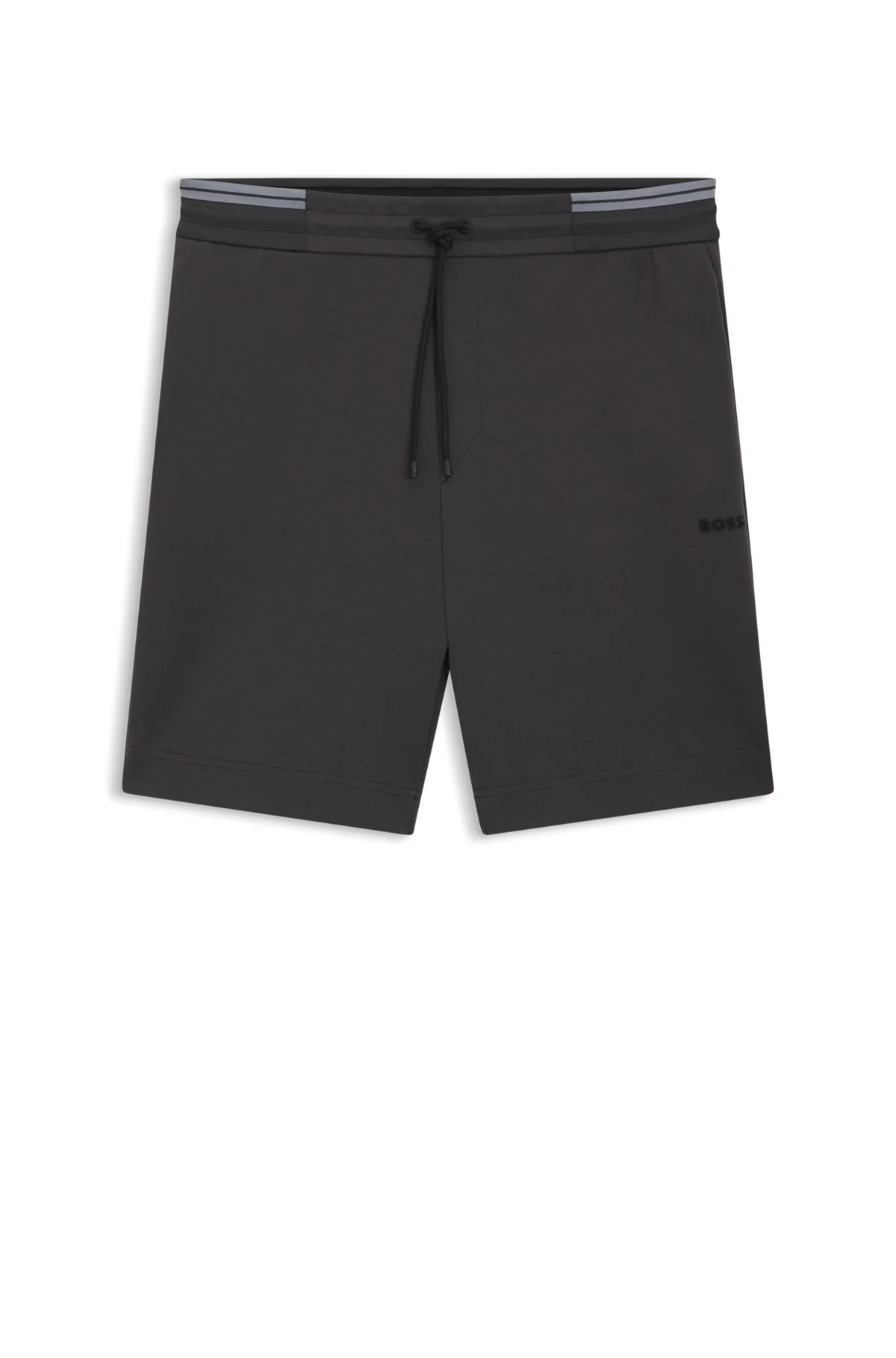 DETAILS Shorts Zone - 50543091 With stripe details on the drawstring waistband, these straight-fit BOSS Menswear shorts make a great casual building block. Stretchy cotton blend. Molded logo. Regular fit Regular rise Drawstring Pockets bottom front: Side pockets Pockets bottom back: Welt pocket QUALITY & CARE INSTRUCTIONS Do Not Bleach Do Not Dry Clean Iron Low Heat Quality: 62% Cotton, 33% Polyester, 5% Elastane, pocketing: 100% Polyester Machine Wash Cold Gentle Do Not Tumble Dry