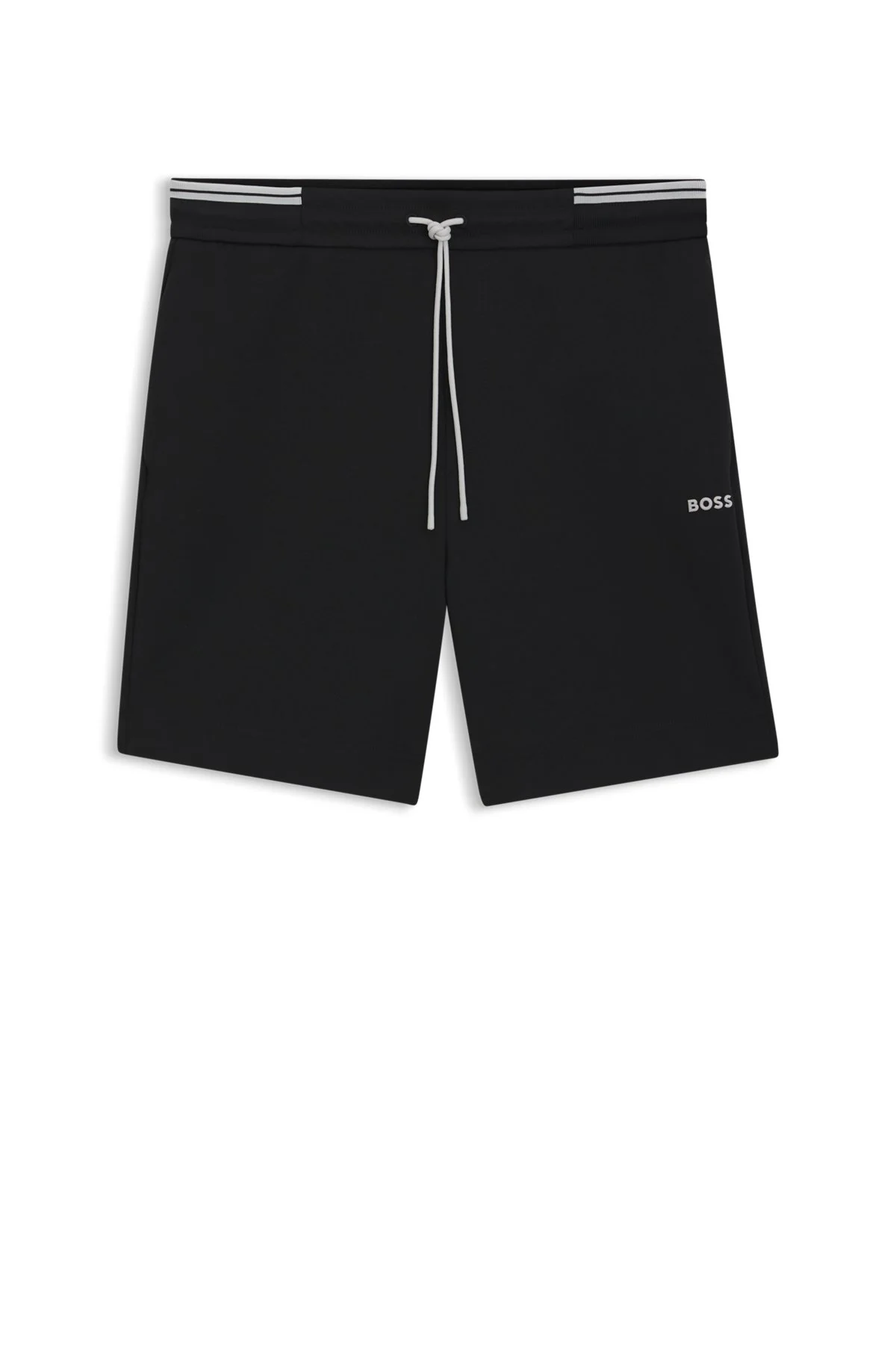 DETAILS Shorts Zone - 50543091 With stripe details on the drawstring waistband, these straight-fit BOSS Menswear shorts make a great casual building block. Stretchy cotton blend. Molded logo. Regular fit Regular rise Drawstring Pockets bottom front: Side pockets Pockets bottom back: Welt pocket QUALITY & CARE INSTRUCTIONS Do Not Bleach Do Not Tumble Dry Quality: 62% Cotton, 33% Polyester, 5% Elastane, pocketing: 100% Polyester Do Not Dry Clean Iron Low Heat Machine Wash Cold Gentle